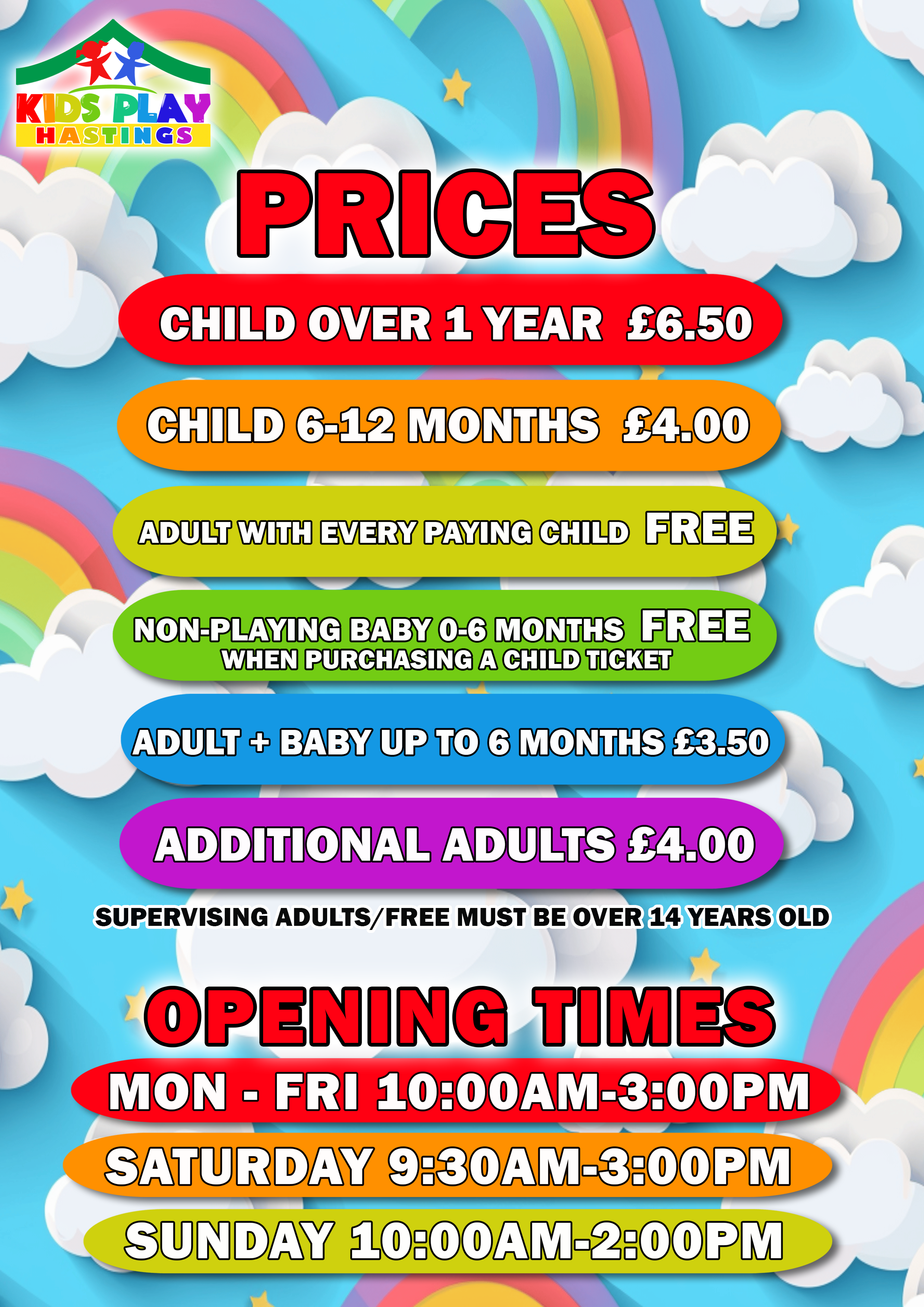 Your membership allows you to visit Kids Play Eastbourne, and Kids Play Hastings once it’s built.Memberships are available for:
